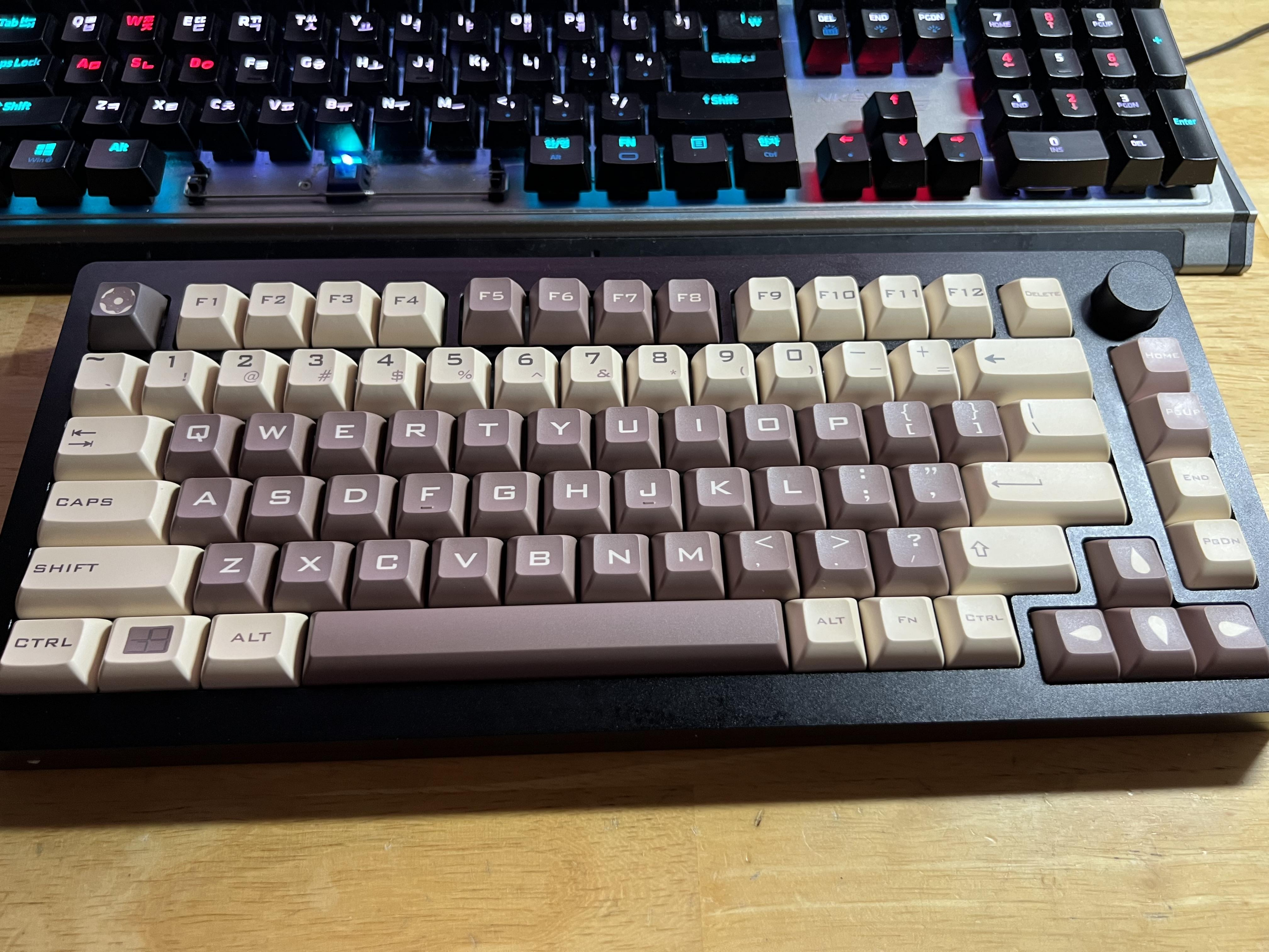 스위치와 키캡도 설치를 완료 하였다 우선 필자의 생각대로 검은색 프레임과 브라운 계열의 키캡도 색상 매치가